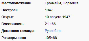 вмещает: 21166 тысяч зрителей Материал из Википедии — свободной энциклопедии Леркендал (норв. Lerkendal) — футбольный стадион в Тронхейме, Норвегия. Второй по величине стадион Норвегии (после Уллевола). Домашняя арена клуба Русенборг. Рекорд посещаемости, 28 569 зрителей, был зафиксирован в октябре 1985 года, в матче последнего тура чемпионата Норвегии против «Лиллестрёма», в котором «Русенборг» стал чемпионом. Подвергался реконструкции в 1949, 1961-1963, 1968, 1996, 2000-2002 гг. Неоднократно принимал матчи сборной Норвегии.